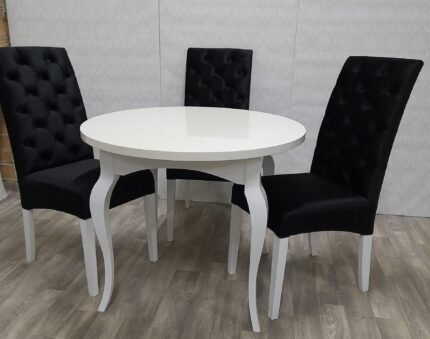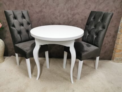 Dining set – table and 2 chairs. You can choose the color of the fabric and the wood.