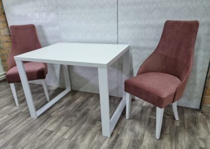 Dining set – table and 4 chairs. You can choose the color of the fabric and the wood.